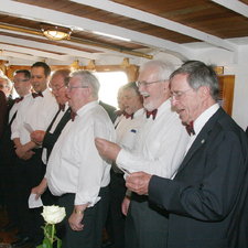 LaO-Präsident Robert Fischer lud seine Verwandten, Freunde und auch den Liederkranz zu seinem 70. Geburtstag auf das Dampfschiff "Hohentwiel" zu einer Rundfahrt von Romanshorn ein. Auf dem Schiff spielte auch die Swiss-German Dixie Corporation unter Leitung von Kurt Lauer. Der Liederkranzt brachte dem Jubilaren ein Ständchen und sang im Hafen noch einige Lieder auf Deck.